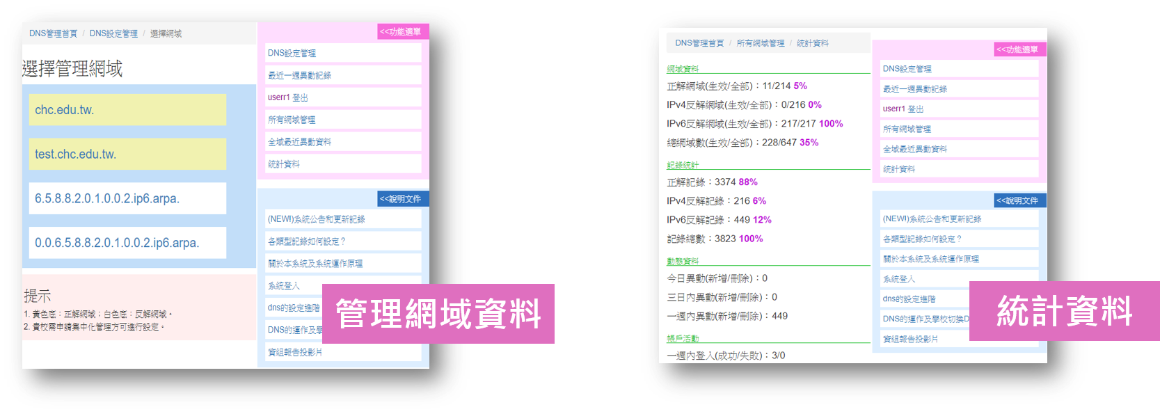 區網中心利用已建置的雲端伺服器提供縣市網路中心及連線學校備援的DNS、Web主機服務,以加強網路服務的可用性。104年度收容和平國小、和平國中3台虛擬主機。104.12.11再收容博愛國小1台虛擬主機。105年收容彰化縣網90所國中小DNS服務,106年再收容彰化縣網83所國中小DNS服務,大幅降低這些實體主機成為DDOS攻擊殭屍主機的風險。今年度導入臺中市網的DNS管理系統,結合教育部OpenID的認證機制,提供彰化縣已完成集中化的中小學可以自行管理各自學校網域資料的介面,目前正在做系統最後測試中。